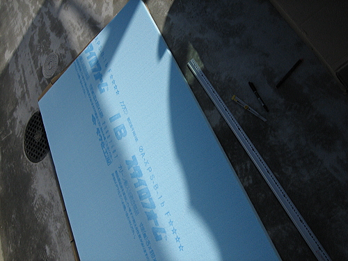 引き戸部分は薄いので25mm厚のスタイロフォームではなく、発泡スチロール板(厚さ10mm)で断熱します。