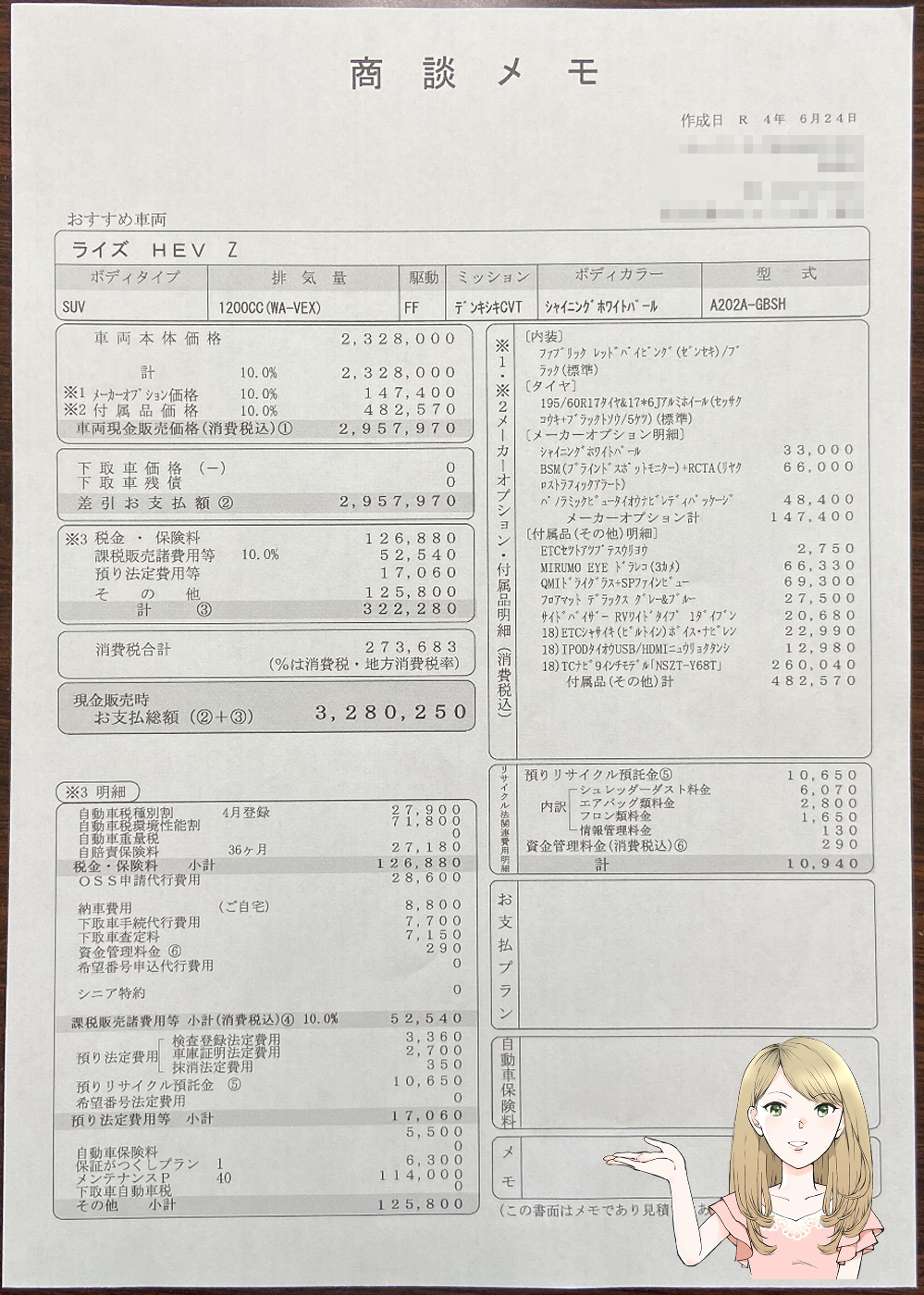 ライズ Zの新車本体価格は約204万円、値引きなしの乗り出し価格は300万円となりました!値引きを含んだ乗り出し価格は下で紹介しています。
