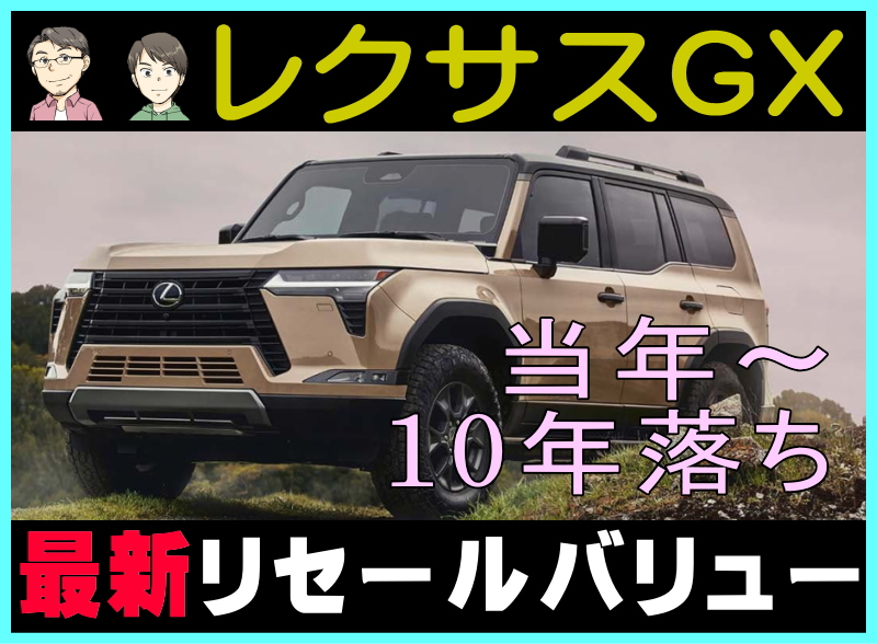 業者オークション相場を元にプロの車屋が調べたレクサスGXのリセールバリューを紹介しています。リセール・残価率は都度更新しています。