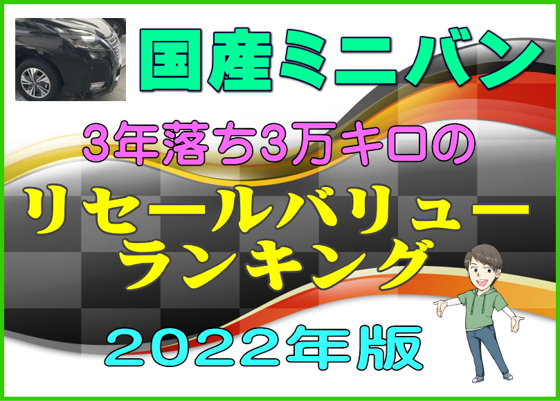 国産ミニバンの3年落ち3万キロのリセールバリューランキングのデータを紹介します。