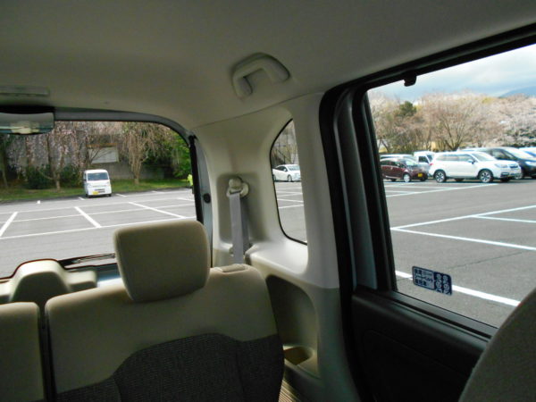 Aピラーが細く、しかも角度が立っているので視界を遮らないことや、三角窓ならぬ長方形窓?の面積が大きいことが死角が少ない理由です。